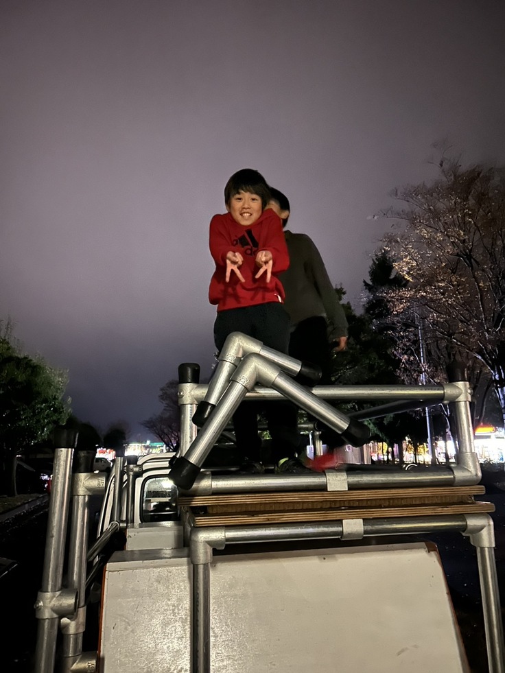 パルクールはテレビで見てかっこいいと思いました。やってみたらとっても難しかった。最初は出来ない事ばっかりでしてが、何回も練習するうちに技が出来るようになり嬉しかったです。お尻をあげた方がいいとか手の場所とかいつも詳しく教えてくれてありがとう!!1番好きな技は、コーヒーグライダーで、コングボルトが出来るようになった事も嬉しいです。そして、パルクールの片付けと軽トラに乗れる事もとっても楽しいです!!