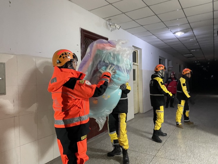 ピースウィンズは、19日午前に、現地提携団体であるレスキューチーム「公羊会」とのコンタクトを開始。19日11:30(現地時間)のフライトで、公羊会がレスキュー隊員9名と救助犬2頭を杭州から甘粛省の蘭州市に派遣することを決定しました。その後チームメンバーが増え、隊員は計25名、救助犬2頭となり、19日18:30(日本時間19:30)に被災地到着。、