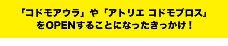 アート制作がしたいが居場所がなく困っている卒業生たちと地域のアートをしたい子どもたちがごちゃ混ぜでアートを楽しめるアートスペース「コドモアウラ」、放課後等デイサービスを利用したいと待ってくれている子どもたちのための居場所「アトリエコドモブロス」、そして子どもたちや参加アーティストの作品・商品を制作後すぐに販売・購入できるショップの3つを併設した施設を10月に開所します。