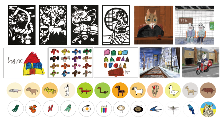 なおコドモアウラでは作品そのものだけではなく、作品のデザインを使ってTシャツや缶バッジ、ポストカードなどの商品展開も広げていこうと計画しています。