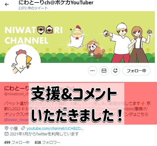 「にわとーりCh」様より 支援&コメントいただきました!