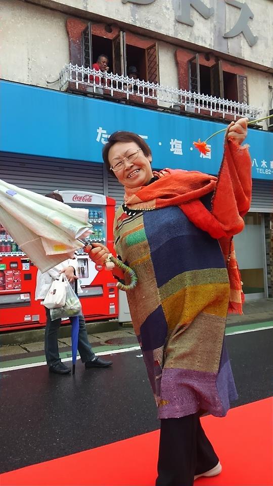 岩手県宮古市近辺でさをり織りをしている方たちと、被災した商店街のど真ん中の道路でファッションショーをやりました。