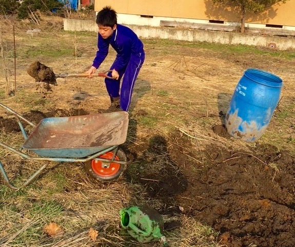 3月中旬 耕運機により土起こしをし、土作り。堆肥を投入