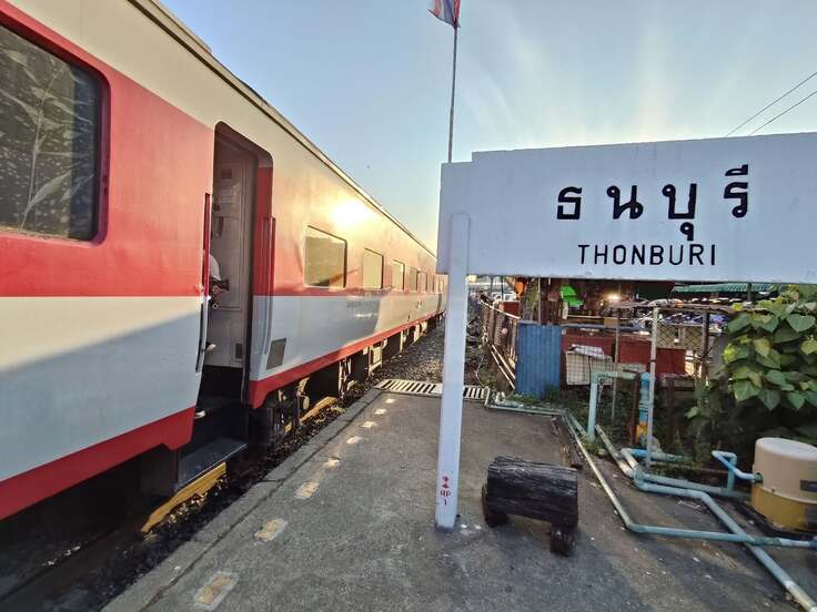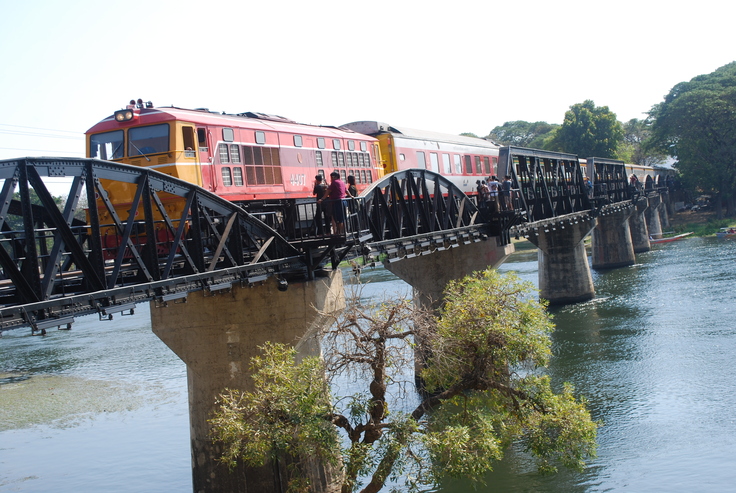 リターンツアー2日目は旧泰麵鉄道のタムカッセ橋(アルヒル桟橋)を行く普通列車に寝台車を連結して、途中駅で下車して対岸から追っかけ撮影をしようというツアー。定期の普通列車に24系寝台車を併結、始発のトンブリ駅から24/14系が出るのも初めてだした。