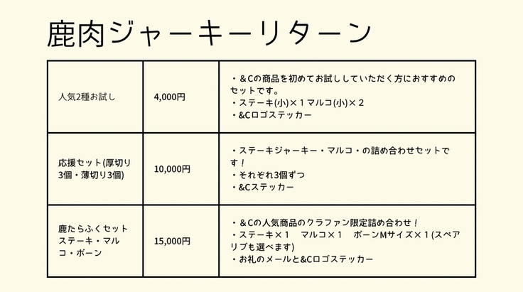 出身:群馬県前橋市 経歴:調理師→猟師→ペットおやつ専門店 在籍:&C 性別:男 年齢:26歳(1997年生) 数あるページの中からご覧いただき誠にありがとうございます。 ペットおやつ専門店&Cの代表長原駿と申します。 私は調理師の頃に猟師という職業に出会い、その時に鹿の廃棄という問題を目の当たりにし活用を始めるために&Cを立ち上げました。 &Cでは主にペットおやつの製造販売を行っています。 今後は廃棄率を下げるため、レザーのプロダクト、角のプロダクトを進めていきたいと思っております!