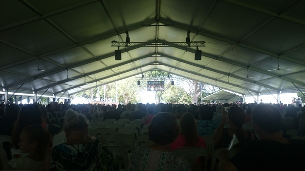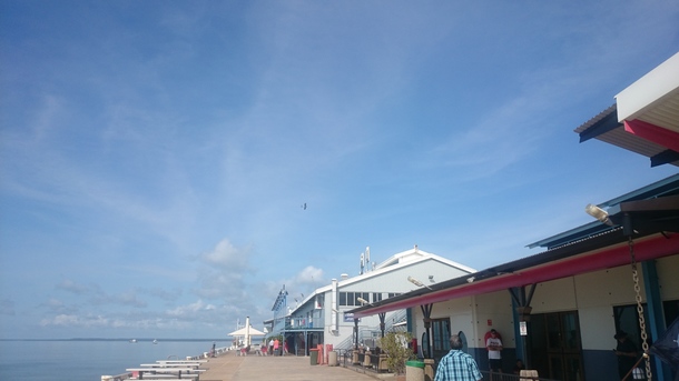 小さくて見にくいですが、旧式の双翼機が飛んでいます。ダーウィン空爆当時の様子を再現するためです。