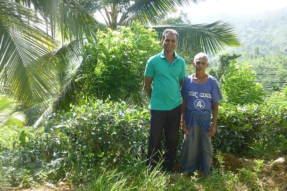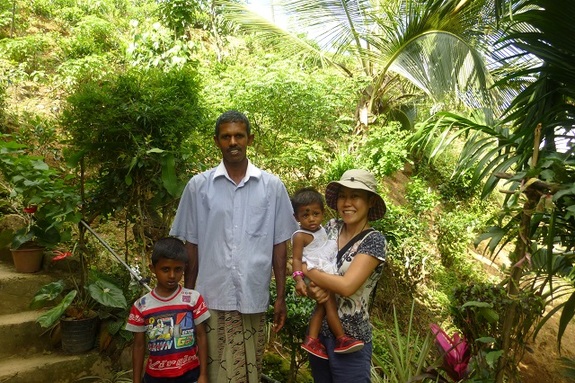 (スシリ・プレマシリさんとお子さんが、有機転換中の茶畑の中で。)