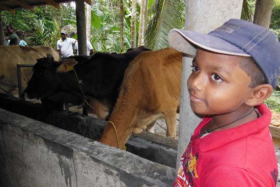 家にいたお母さん牛(子牛はまだ家にいます)をセンターに連れてきたプレマラトネさんの息子。 家族のような存在の牛と離れるのを寂しがっています。