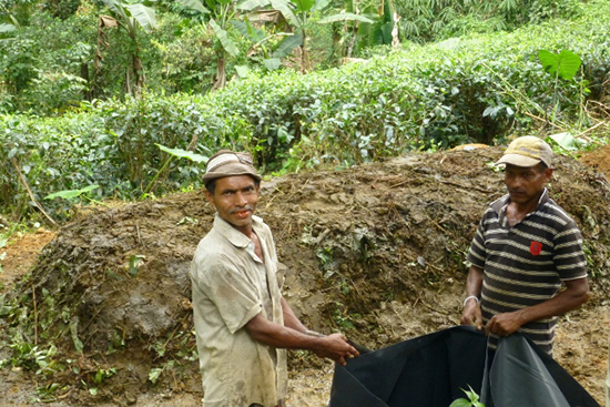 ついにコンポストセンターが2014年12月26日に完成しました。スリランカの農村らしいのんびりしたペースで、整地作業から含めると4ヶ月もかかってしまいましたが、エクサ(紅茶の有機転換事業に参加している農家からなる生産者グループ)のメンバーのみならず、同地域の人びとから期待の声が聞こえていましたので、デニヤヤスタッフのみんなはホッとしました。