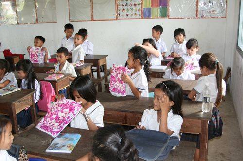 低学年の児童100名に文房具のプレゼントをしました。