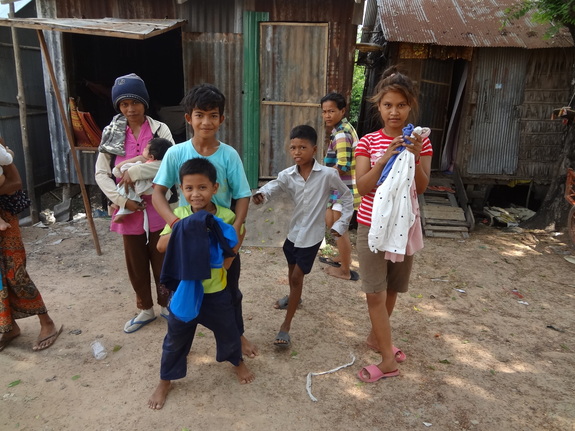 カンボジアには雨季と乾季があり、乾季の夜は肌寒く、長袖の衣服が必要になります。シャツの上に羽織るフリースやナイロンジャケットは虫除けにもなりますので本当に重宝します。もちろん、温暖地の基本的な衣服、半袖のシャツやブラウス、ティーシャツの需要は最も高いものです。ズボンは、女の子でもトレパンやジーンズが好まれ、スカートやワンピースも喜びます。タオルやバスタオルはとても貴重です。薄手の毛布や厚手のシーツは上掛け寝具として役立ちます。地域の子どもたちは、親も含めて服らしい服が無く、現地に持って行きますと、あっという間に無くなります。数箇所の村の支援を行っているので需要は無限にあり、どれほど多くの衣料品があってもすぐに底をついてしまいます。子供服はすぐにサイズが合わなくなり、元気なのはいいですが、あっという間にボロボロにしてしまいます。カバンも子供たちの通学用として需要が高いものの一つです。ノートなどを入れることの出来る大きさでしっかりした実用的なものが良く、チャックのついた小型バックなどは女の子に人気です。日本製の靴や鞄は非常にしっかりと作られており、とても喜ばれます。靴は通学用として必要なものの一つですが高価で買えないので裸足やサンダルで行っている子が多いのが現状です。