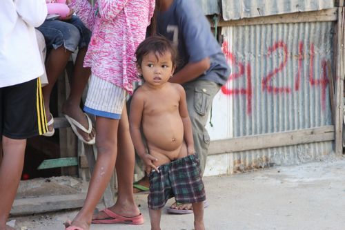 プノンペン郊外に位置するスラムは、かつては都市中心部に位置し、人々は日雇い労働者として重宝されていました。中心部の都市化が進むにつれて、スラムに住む人々は郊外に移転せざるを得ない状況になりました。政府から認められた地域であっても、社会サービスはほとんどなく、水道やトイレはないのが普通で衛生状態が非常に悪く、悪環境の中で幼い子どもを抱えて途方に暮れる母親の姿も見られます。そして貧困地域であるスラムの大人たちのほとんどは教育を受けたことがなく、読み書きができませんので経済が成長し、働く機会が増えても、読み書きができないために応募することはできません。日雇い労働や、ごみ収集などの単純労働で生計を立てていますが、そのほとんどが1人辺り1日1ドル以下の生活を強いられています。