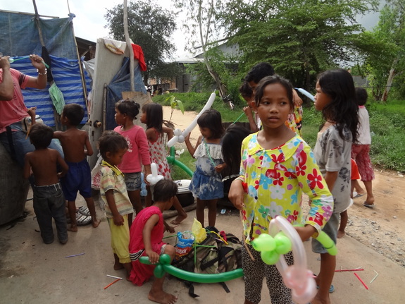 支援しているカンボジア/プノンペン郊外のスラムはもう以前のように緊急事態ではありません。すぐにビニールシートや炊き出しが必要なほどではないんです。しかし、貯めた雨水を飲み、家の裏で穴を掘って用を足し、一日一回の食事しかなく、着るものにも不自由し、義務教育である初等教育も貧困が理由で途中でやめてしまっています。