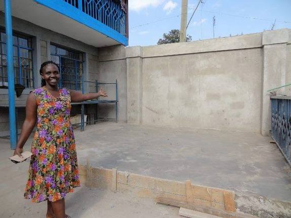火災から1ヶ月後の写真です。年末年始もずっと休みなく,学校関係者はもちろん、スラムのみんなは働き続けてくれて、順調に工事は進みました。学校中のあちこちに非常口を取り付け、風通しを良くするための大きな窓をいくつも付け、学校の敷地内には死角ができないように見晴らしを遮るものは移動させ、奥まった位置にあった男子寮は危険だと場所を移動させました。ケニアのスラムの路地は細い迷路状で、住居が密集しています。もしもあの火災が夜中に起きていたとしたら、多くの子どもたちが逃げることができずに命を落としていただろうと考えると、いつまた火が広がるかと恐怖が続いたそうです。万が一、またそんなことが起きたときには、いろんな逃げ場があるように、非常口をあちこちに取り付けること。奥まった部屋に子どもたちを寝させないこと。火が回ることを防ぎ、暴徒が乱入することを防ぐための防壁を強化。