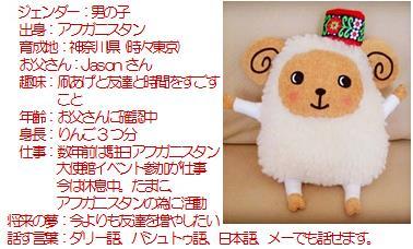 最後に、昨日から女の子の夢の応援をしてくれているバハールちゃんについて、たくさんの質問を受けましたのでバハールちゃんの生い立ちも紹介します。バハールちゃんは元駐日アフガニスタン大使館広報官のジェイソン・プラットさん作成したキャラクターです。羊のバハールちゃんにこのプロジェクトを応援してもらうことで、より多くの家族の幸せと平和、そして女の子の就学の実現につながると願っています。