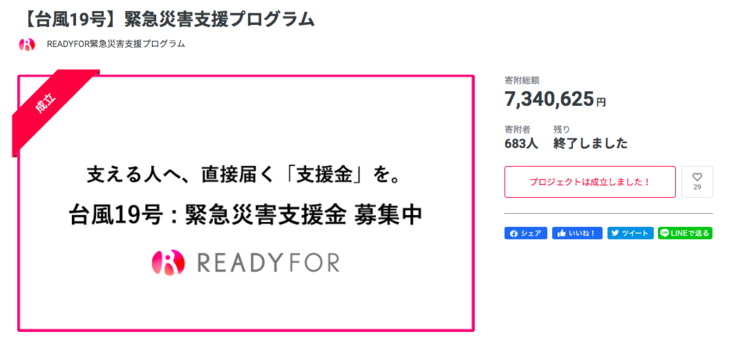 2019年10月14日〜2019年11月13日までご支援を受け付けておりました、【台風19号】緊急災害支援プログラム の支援募集が無事に終わりましたことをご報告させていただきます。