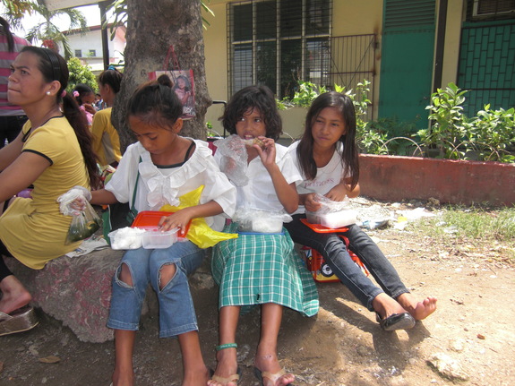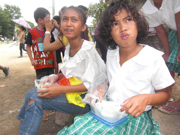 自分もお腹がすいているのに・・・・ 1/3だけ食べて、残りはお昼ご飯を食べられない年下の子に分けていました。