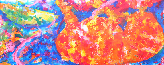 「Shimi-shimi 胎動」綿布、アクリル 120×300cm 2013年