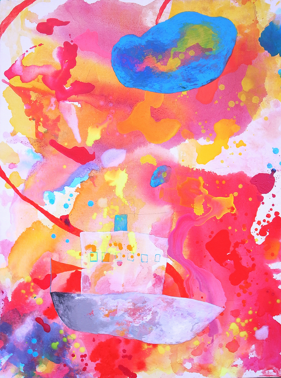 絵の具の染みと個人的なストーリーを融合して造り出す