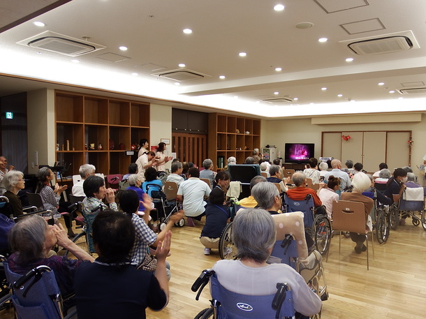 イベントの内容は「ダンスタイム(ディスコタイム)」「有名人によるライブあるいはトークショー」「薬剤師による薬や健康相談」です。ダンスタイムでは、機材を持ち込みDJを入れて音楽およびしゃべりのパフォーマンスを披露して、入居者と施設のスタッフを元気にしてあげたいと思っております。