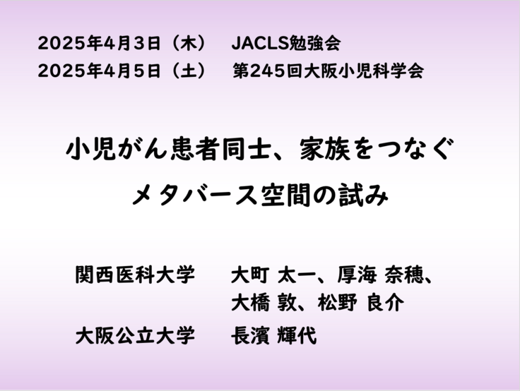 先日、大阪小児科学会およびJACLS(日本白血病研究会)勉強会にて、本プロジェクトについて発表させていただきました。