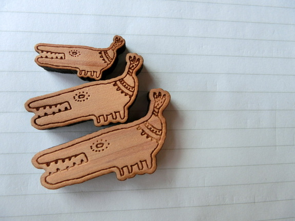 さてさて遅くなりましたが、ブックマークのデザインが決定しましたよ。こちらヘンなイキモノ「ワニ」くんたちです!!