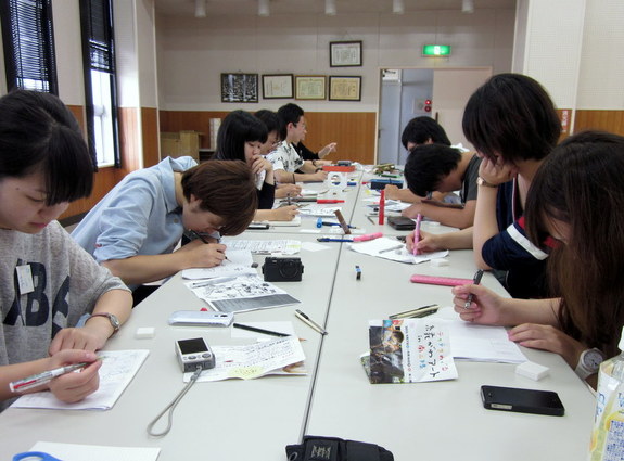その後は、会場のイメージに合わせた消しゴムはんこ作り。