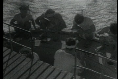 当時のマグロ船は、木造船で、食堂すらない小さな船でした。(*写真:食甲板で食事をとる漁師)そのため、燃料やマグロを保管する場所が小さく、船はとったマグロですぐにいっぱいになり、どうしても日本と漁場(爆心地周辺)を頻繁に行き来する必要がありました。