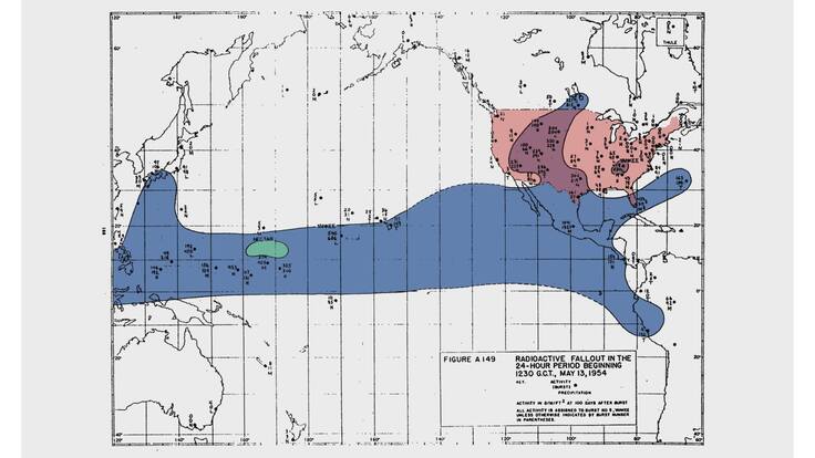 アメリカによる太平洋上での実験により放射性降下物(FALLOUT)がアメリカにも降り注いだ事実