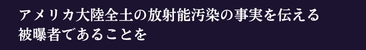 そして、アメリカ大陸全土の放射能汚染の事実を伝え、ほとんどの人が被曝者である、という当事者意識をもってもらいたいのです。
