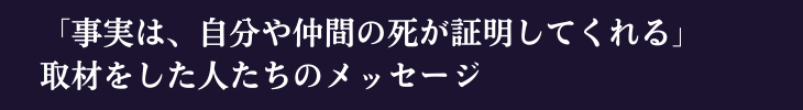 「事実は、自分や仲間の死が証明してくれる」というものです。自らの死をもってしか証明できない、なんて。でも、そうやって何万人の人が亡くなっていきました。
