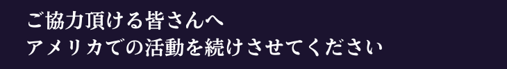 厚かましい話ですが、みなさんからご支援で、アメリカでの活動を続けさせてください。