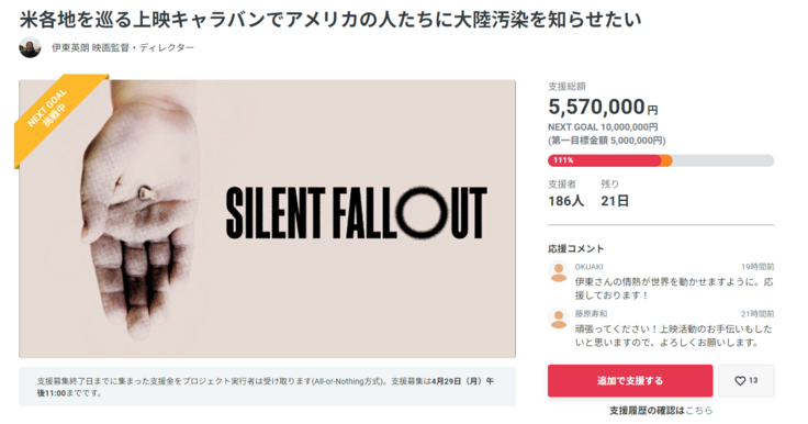 映画「SILENT FALLOUT」をご支援頂いている皆様