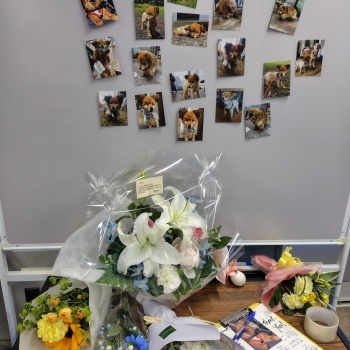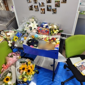 今回のクラウドファンディングの支援をして下さっている、ペトコト OMUSUBI の担当者さまからも大きな花束を頂戴しました。