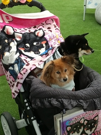 最後に、ラキの保護時からラキ推しで応援をして下さったサポーターさんの子(本当は2匹飼いさん)と一緒にカートに乗せてもらったラキさんの写真で締めくくりたいと思います。