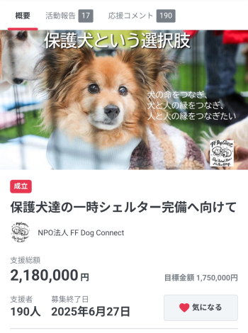 今後は、こちらの活動報告でお礼のリターン送付状況、シェルターの進捗状況などをお伝えしていきます。