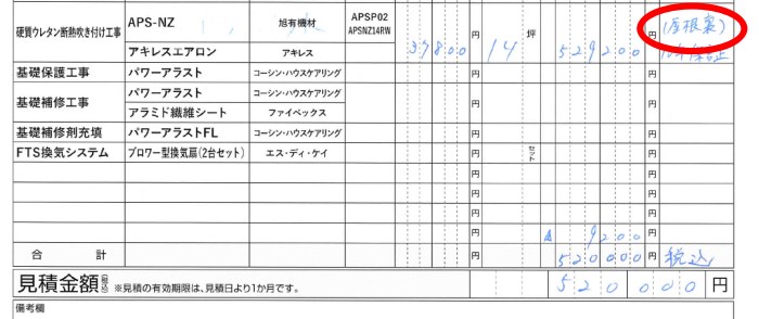 以前見積もりをだしていただいたのは屋根裏で