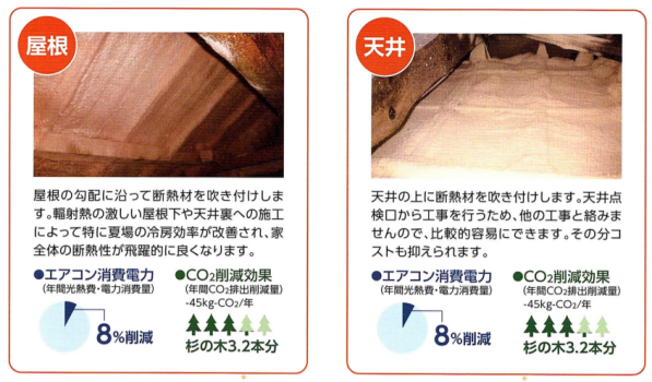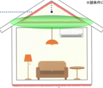 屋根裏施工の場合と、天井裏施工の場合の断熱効果は変わらないという事。