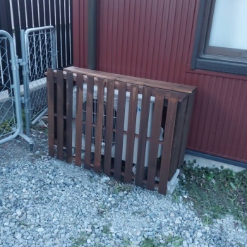 室外機は得意のDIYでカバーを作り節電効果UPを狙います