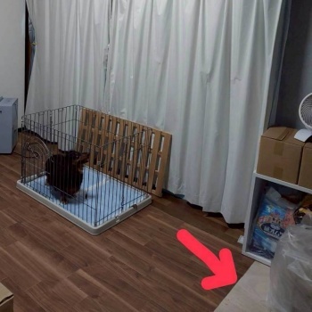 ただ、シートのサイズ的に部屋を全部覆いきれなかったのと、元々押し入れだった所を荷物置き場にしている関係で、完全フリーになった時は、そちらに行かないように柵の設置も考えています。