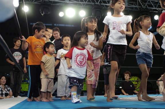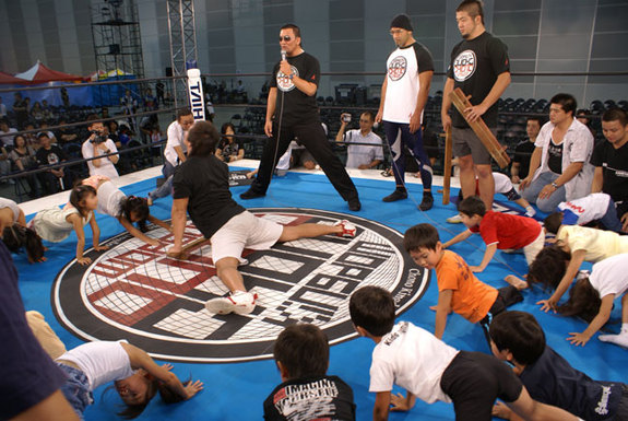 (子供たちにプロレス式トレーニングを直接教えています。)