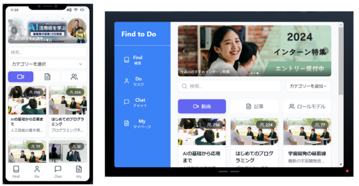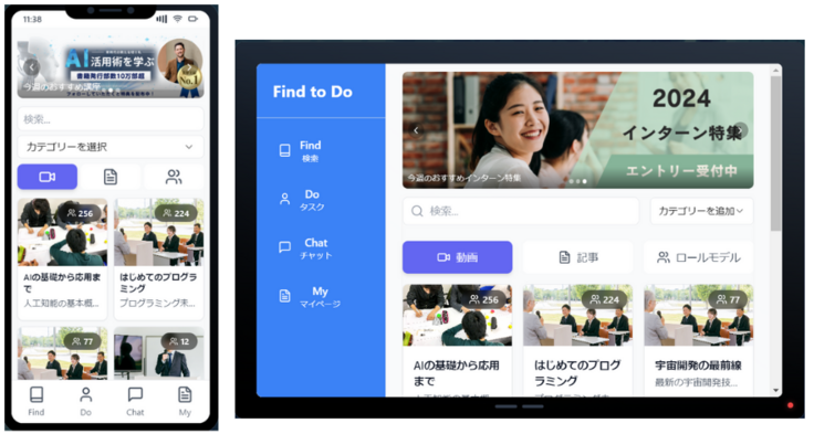 FINDページでは、様々なジャンルの動画・記事・自分が目指すべきロールモデルを探す事ができます。