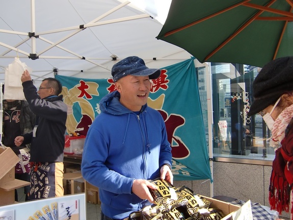 マルトヨ食品さんの工場が再開し、創業時からの看板商品「さんまみりん干し」の製造を再開した2012年2月からは、都内の販売ルート開拓を手伝ってきたそうで、そのひとつが、ここ、中目黒村マルシェです。