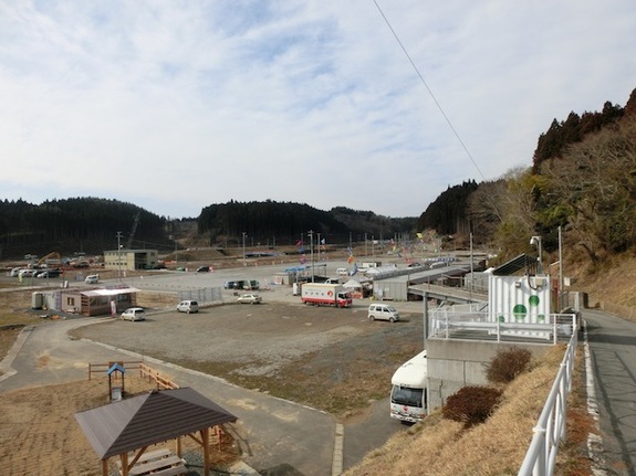 高台移転のことを聞くと、この土地を削ったり、埋めたりして平地をつくっていると、土地造成が終わるまで、あと2年はかかるそうです。それから家を建てるわけだから、あと3〜5年はかかるだろうとのこと。国の定めた集中復興期間は平成27年度までですが、それまでには終わらないのは目に見えています。