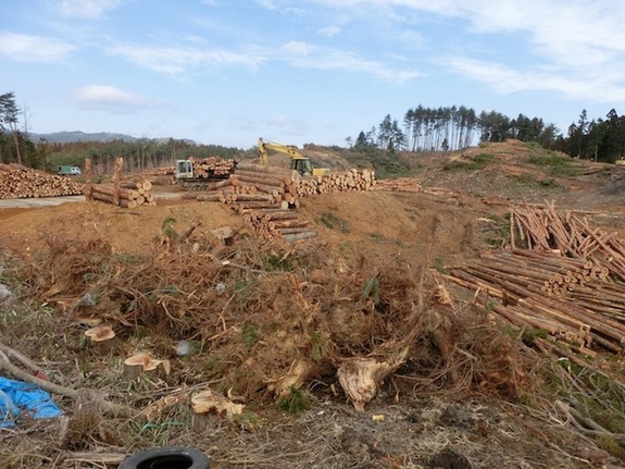 昨日は久しぶりに南三陸町歌津地区伊里前に行く用があったので、防災集団移転予定地を訪れてみると、木の伐採がかなり進んでいました。