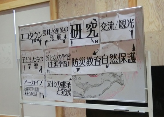 今回は、前半が、ここ3年間、南三陸町内で行われた調査の報告会にあてられ、後半を既に稼動している「ポータルセンター」とこれから設立予定の「ネイチャーセンター」、「ビジターセンター」の3センターを連携活用していくことで、復興計画にあげられている「自然と共生するまちづくり」「なりわいと賑わいのまちづくり」を具体的に考えようじゃないか、というワークショップを含むフォーラムにあてられました。