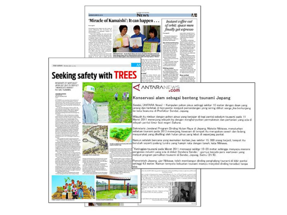 取材後、タイの記者は、日本では津波の被害を受けた沿岸部に植樹をし、「自然の堤防」を造って次なる災害へ備えている団体への取材を通し、自然の力を利用した防災のアイディアに感銘を受けました。そして、「もし、マングローブの森が残っていたら、プーケットが2004年のインド洋の津波から受けた被害は大幅に小さくて済んでいただろう」と報道しました。