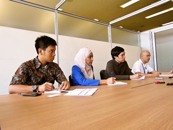 (熱心に取材する過去に来日したインドネシアの記者)