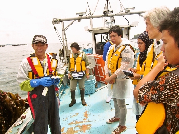 (漁師の方をインタビューする記者たち)