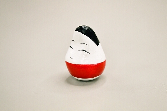 (何度倒しても起き上がります。ミニ起き上がり小法師。高さ約3㎝)